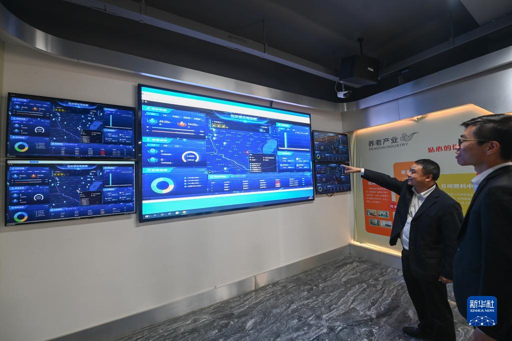 5月11日,工作人員在杭州市臨安區智慧養老服務(wù)中心的數字監管平臺上查看家庭養老床位服務(wù)的實(shí)時(shí)數據。