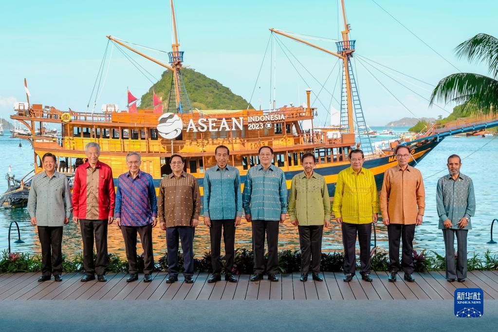 5月11日,在印度尼西亞拉布安巴焦,第42屆東盟峰會(huì )與會(huì )領(lǐng)導人在會(huì )場(chǎng)外合影。