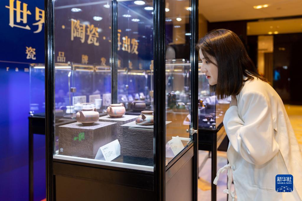 5月10日,參觀(guān)者在“世界·陶瓷·再出發(fā) 陶瓷品牌發(fā)展論壇”現場(chǎng)觀(guān)看展出的陶瓷。