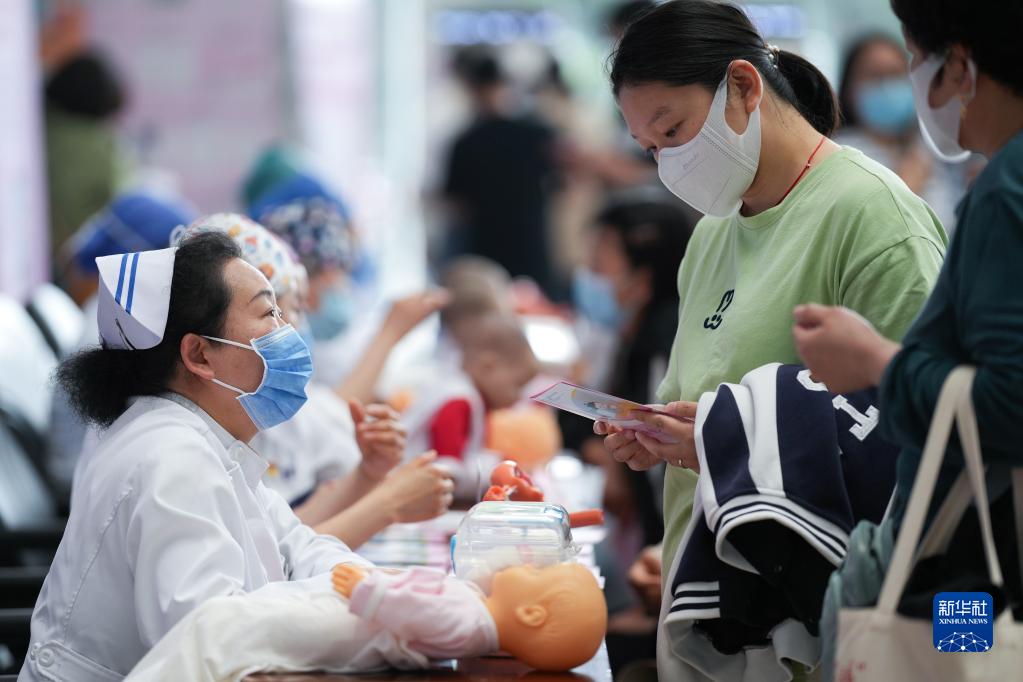 5月12日,護理專(zhuān)家在首都醫科大學(xué)附屬北京婦產(chǎn)醫院東院區為患者答疑解惑。