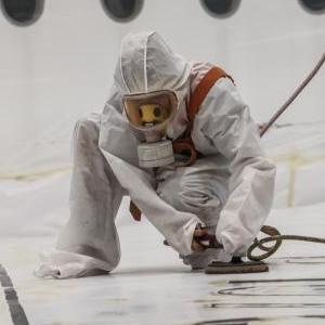 5月11日,在海南自貿港一站式飛機維修產(chǎn)業(yè)基地內,噴涂作業(yè)員對一架空客A350-900寬體客機進(jìn)行噴漆打磨工作。完成整機噴涂后,這架飛機將從??诿捞m國際機場(chǎng)飛往西班牙首都馬德里完成交付。據悉,這是海南自貿港一站式飛機維修產(chǎn)業(yè)基地投產(chǎn)以來(lái)承接的首單空客A350機型飛機整機噴涂業(yè)務(wù)。