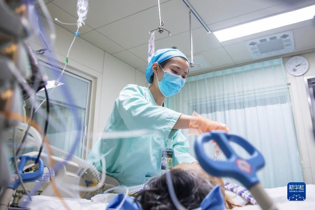 5月10日14時(shí)許,北京協(xié)和醫院重癥醫學(xué)科(ICU)護士張倩為患者翻身吸痰。