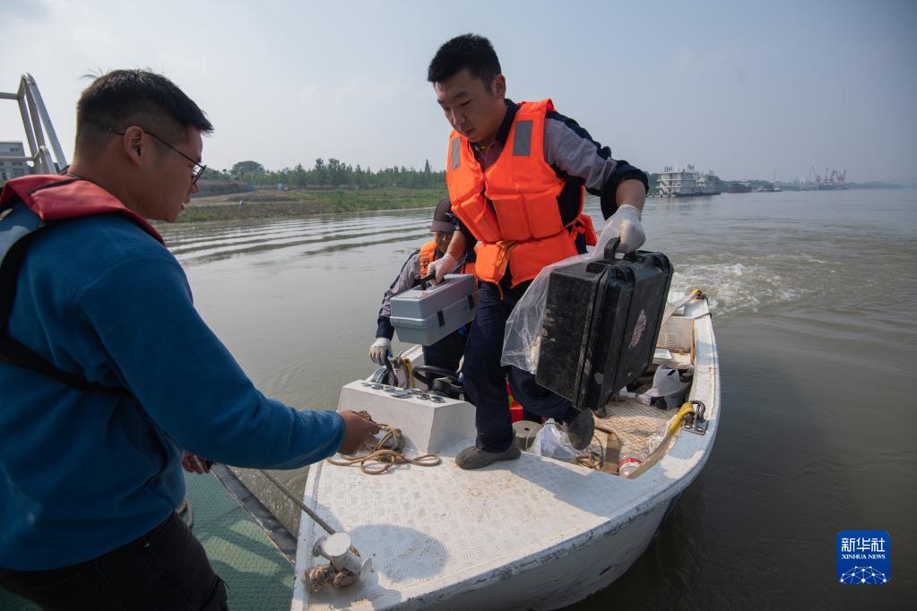5月11日,在武漢市漢南區江段,監測人員完成樣品采集工作后返回主船。