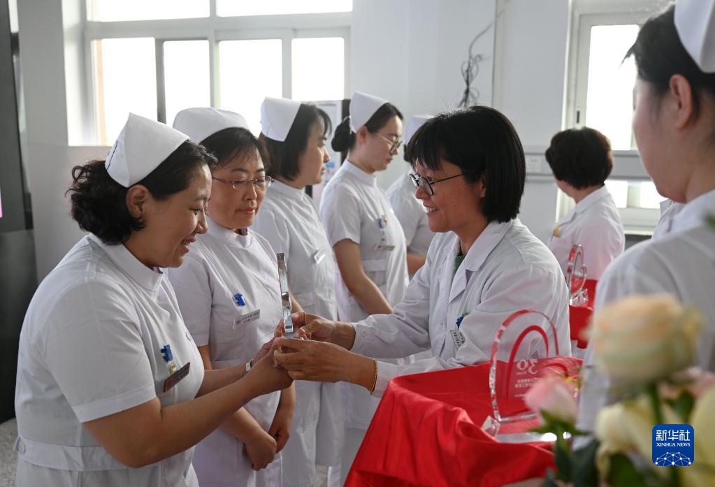 5月12日,“滿(mǎn)30年護齡”護理工作者獲頒獎杯。