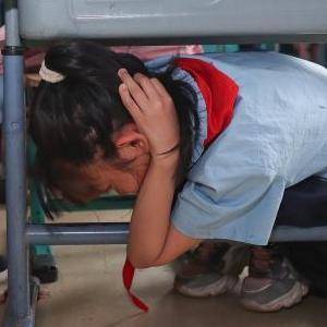 5月12日,沈陽(yáng)市北塔小學(xué)的學(xué)生進(jìn)行室內避險安全演練。