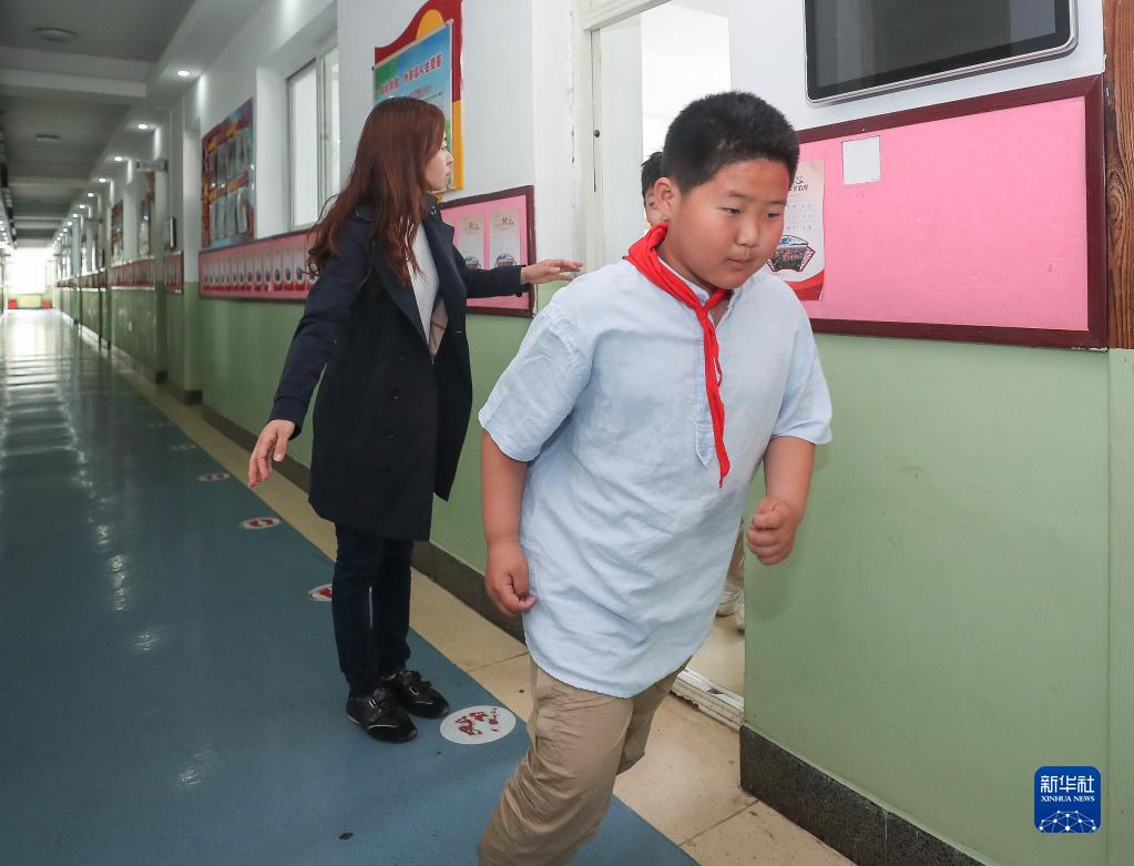 5月12日,沈陽(yáng)市北塔小學(xué)的學(xué)生進(jìn)行室內避險安全演練。