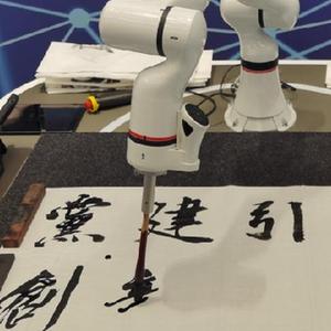 5月11日,山東濟寧,珞石(山東)智能科技有限公司研發(fā)的一款柔性協(xié)作機器人展示書(shū)寫(xiě)毛筆字。