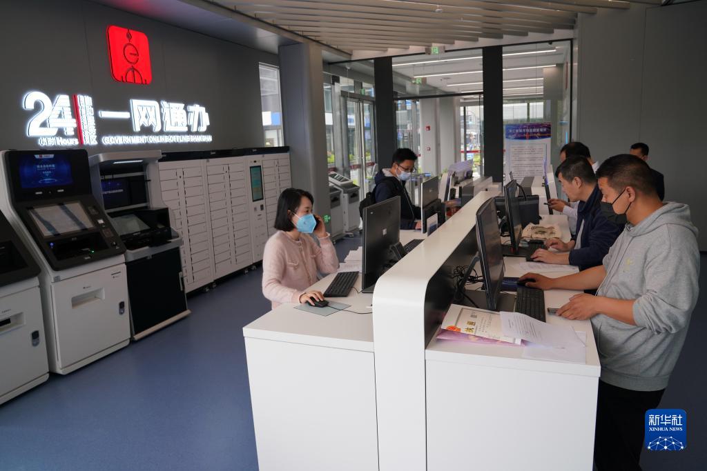 5月12日,市民在中國(上海)自由貿易試驗區臨港新片區政務(wù)服務(wù)中心“一網(wǎng)通辦”業(yè)務(wù)區辦理業(yè)務(wù)。