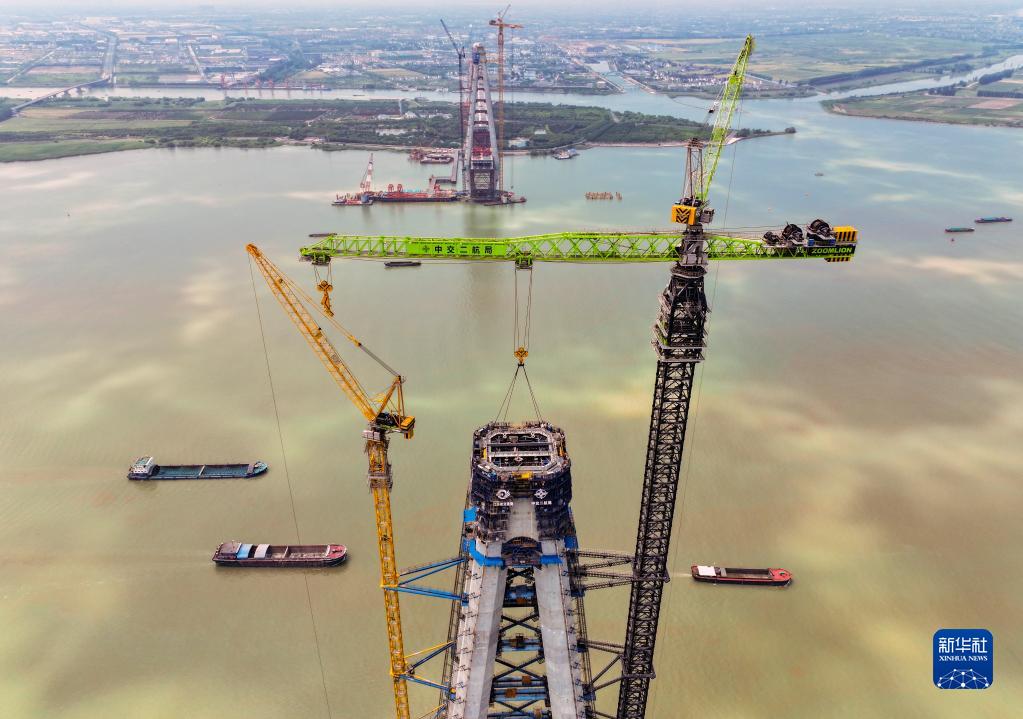 江蘇泰州:常泰長(cháng)江大橋索塔施工加速推進(jìn)
