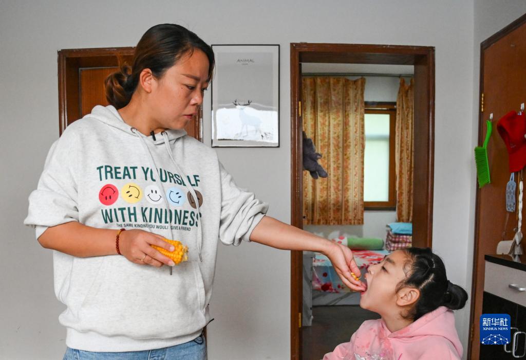 陜西省渭南市特殊教育學(xué)校四年級學(xué)生趙懿菲,小時(shí)候被相關(guān)單位認定腦部發(fā)育遲緩。進(jìn)入渭南市特殊教育學(xué)校上學(xué)后,母親王鴿辭去工作陪同趙懿菲上學(xué),一年365天照顧女兒衣食住行。