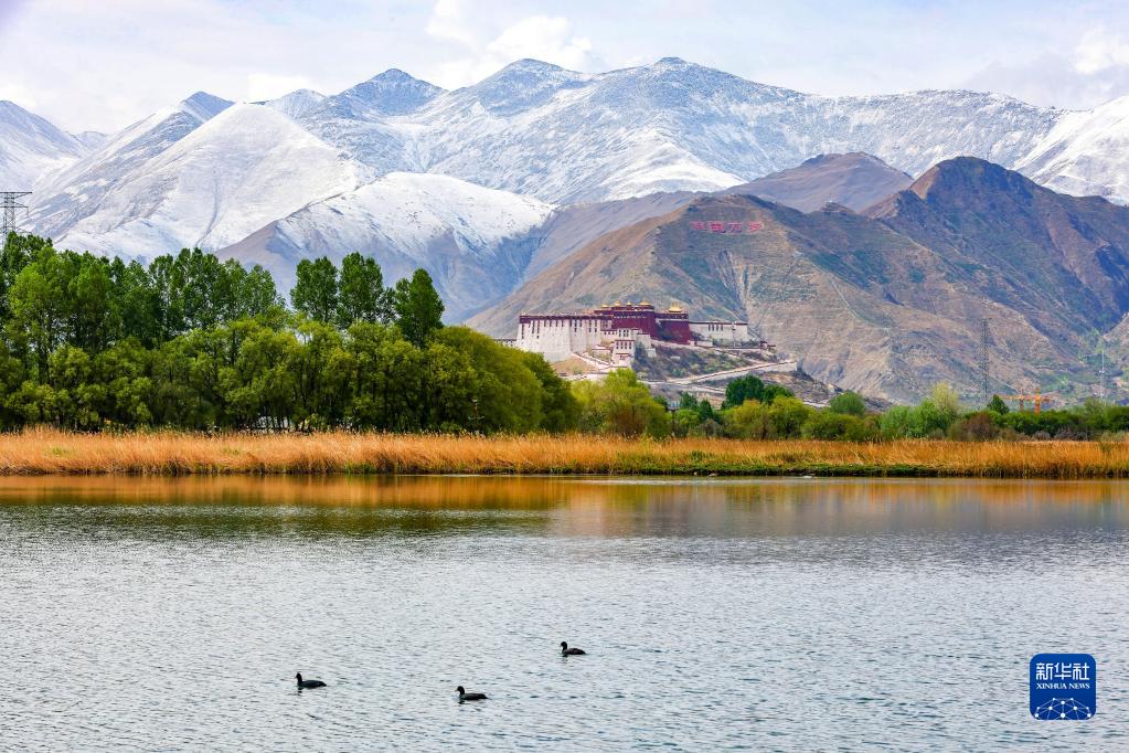 這是在拉魯濕地拍攝的拉薩風(fēng)光,蔥蘢的樹(shù)木點(diǎn)綴在城市中,與山色相映成趣(5月12日攝)。