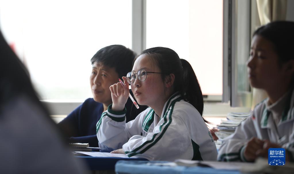 張連琴(左)和女兒李昕偉在教室內聽(tīng)課(5月8日攝)。