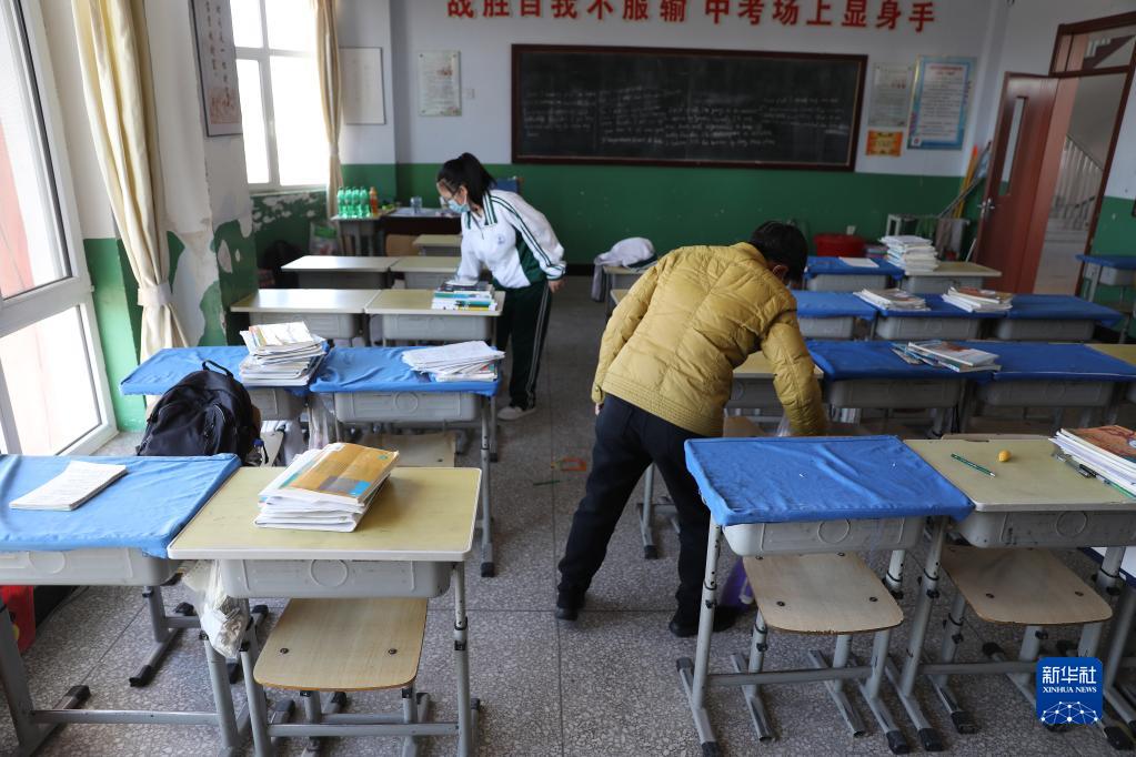 清晨,張連琴和女兒第一個(gè)來(lái)到教室,打掃衛生。這是母女倆多年來(lái)每天到校必做的一件事(5月8日攝)。