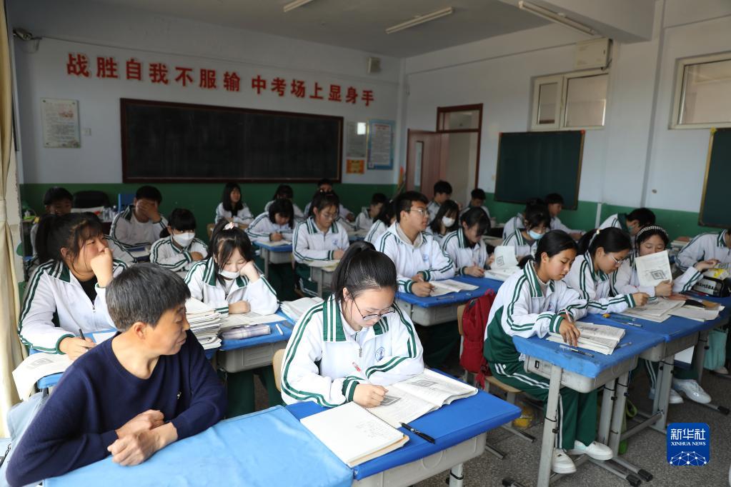 張連琴(左下)和女兒李昕偉在教室內聽(tīng)課(5月8日攝)。