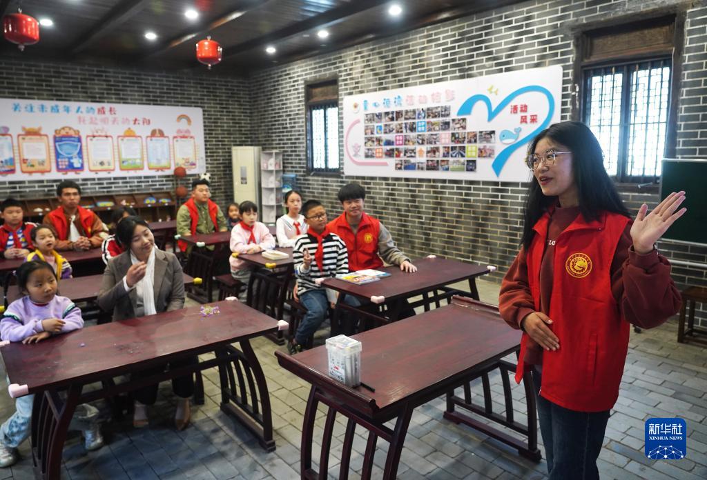 在位于江西省贛州市南康區盧屋村的龍源書(shū)院,“童心港灣”活動(dòng)課堂里傳來(lái)盧婕與留守兒童們歡快的笑聲。