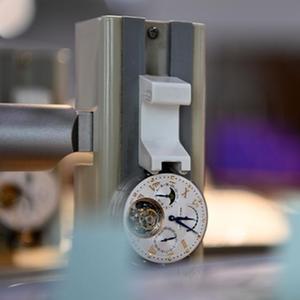在天津海鷗表業(yè)集團生產(chǎn)車(chē)間,員工在調試一款陀飛輪手表(5月12日攝)。