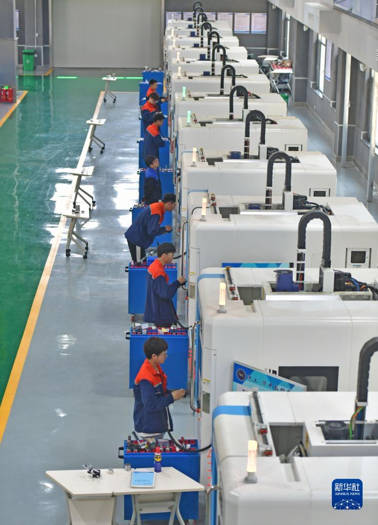 5月12日,沈陽(yáng)工學(xué)院機械工程與自動(dòng)化學(xué)院學(xué)生在學(xué)校實(shí)訓車(chē)間操作五軸加工中心。