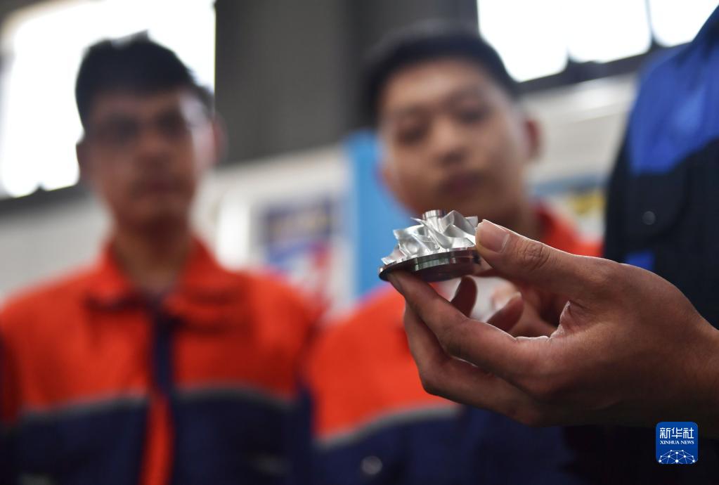 5月12日,在沈陽(yáng)工學(xué)院實(shí)訓車(chē)間,老師給機械工程與自動(dòng)化學(xué)院學(xué)生講解葉輪加工方法。