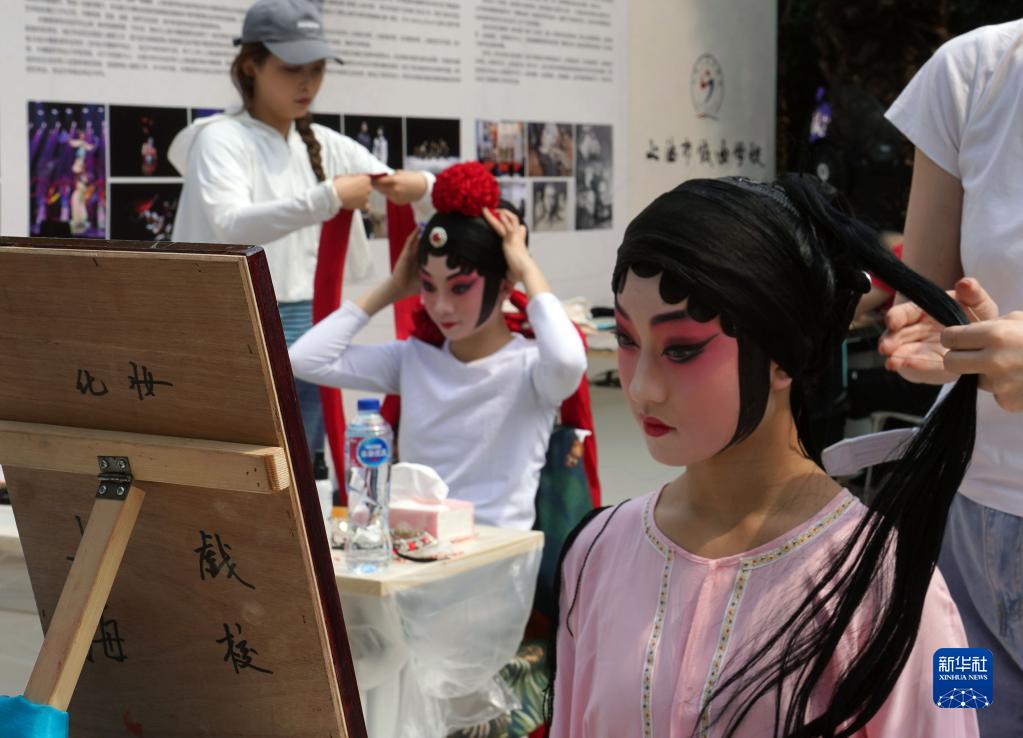 5月13日,上海市戲曲學(xué)校的學(xué)生在為展示活動(dòng)做準備。