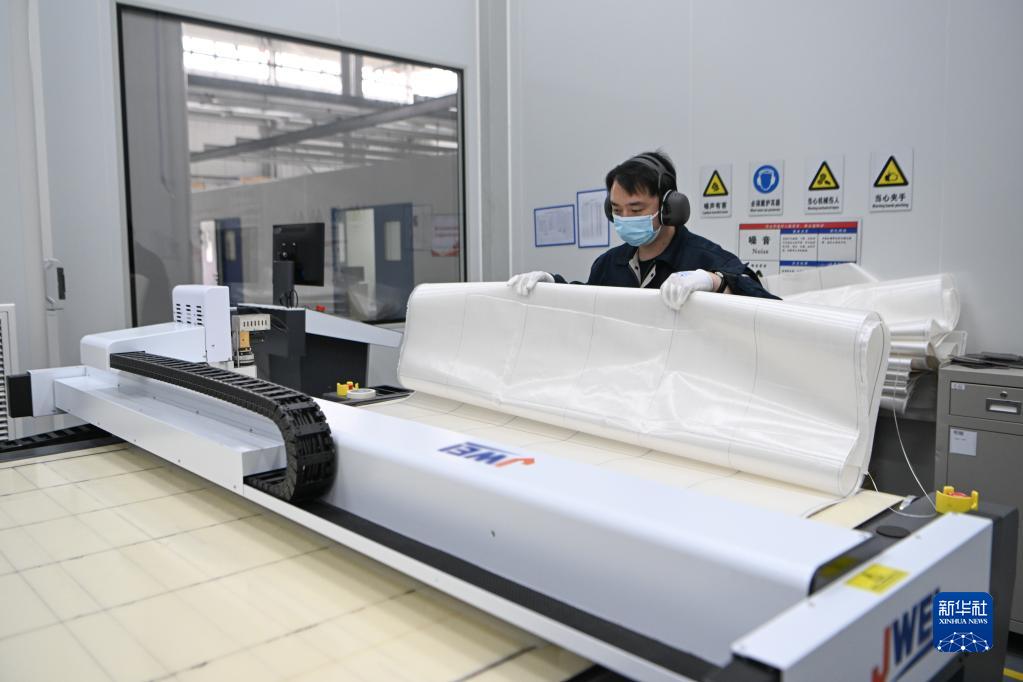 5月11日,在中航裝甲科技有限公司,工人操作設備加工產(chǎn)品。