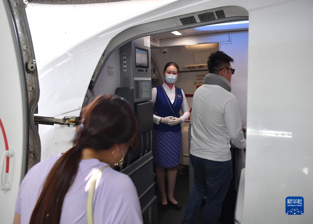 5月13日,旅客登上西安-烏魯木齊-阿什哈巴德首趟航班。