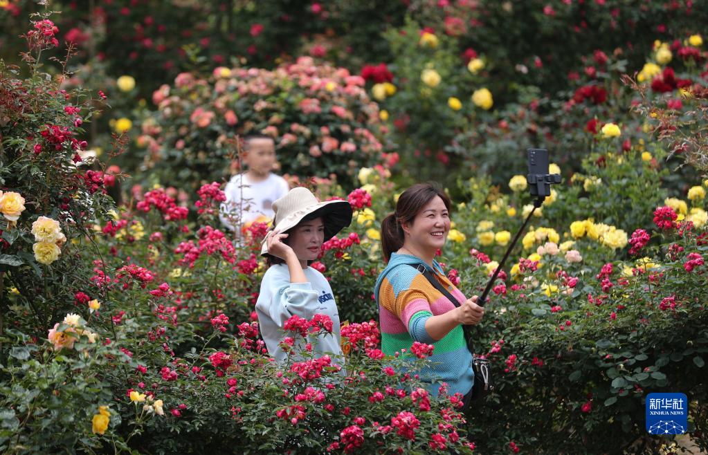 5月13日,游客在貴州省黔東南苗族侗族自治州黃平縣舊州鎮東門(mén)村花卉基地賞花游玩。