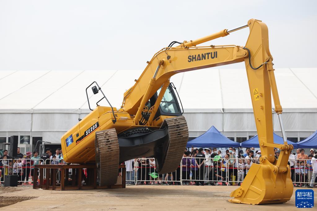 5月13日,在長(cháng)沙國際工程機械展覽會(huì )上,機手駕駛挖掘機表演。