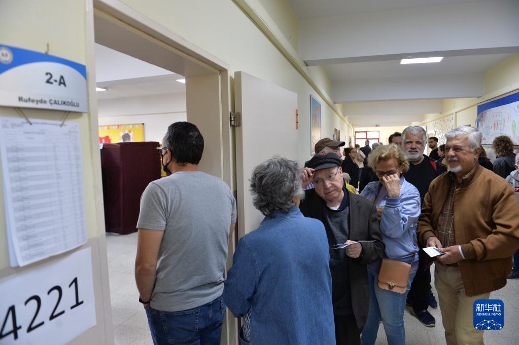 5月14日,在土耳其安卡拉,民眾在一處投票站參加投票。
