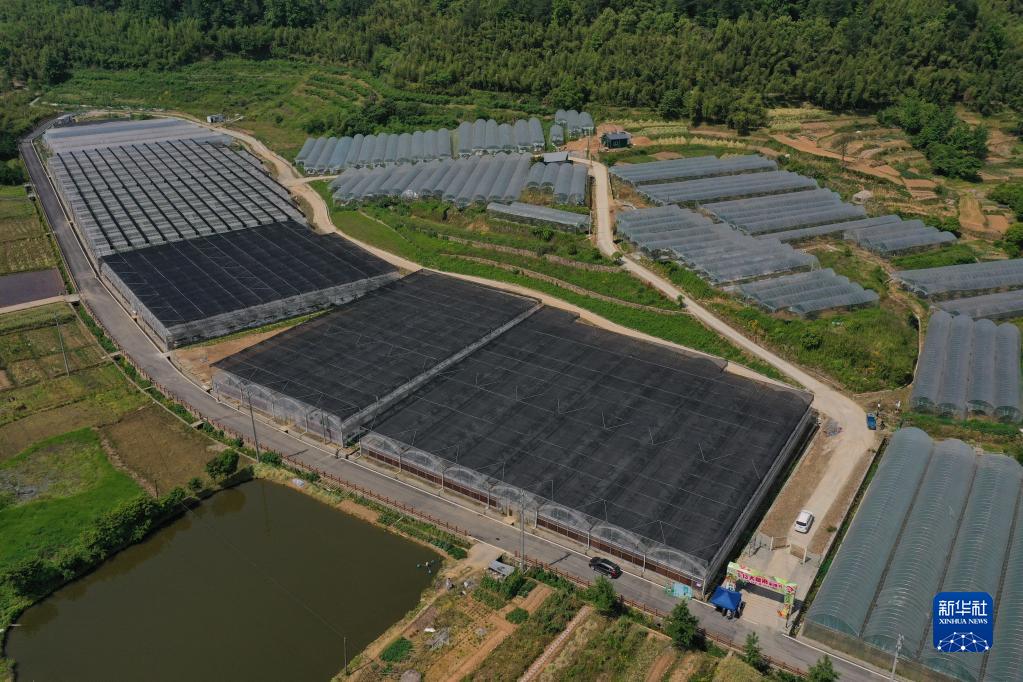 5月14日拍攝的桐廬縣莪山畬族鄉塘聯(lián)村“水果共富工坊”(無(wú)人機照片)。