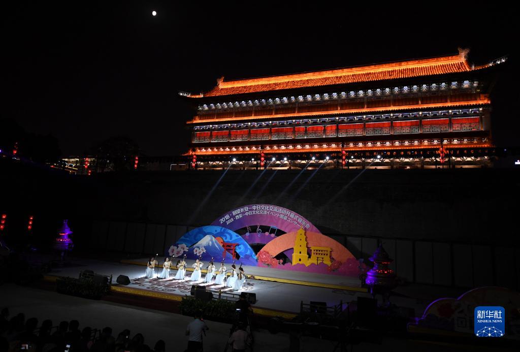 2018年9月22日,在2018·回望長(cháng)安——中日文化交流活動(dòng)開(kāi)幕式音樂(lè )會(huì )上,中國藝術(shù)家在西安明城墻甕城內演奏樂(lè )曲《夢(mèng)入江南》。