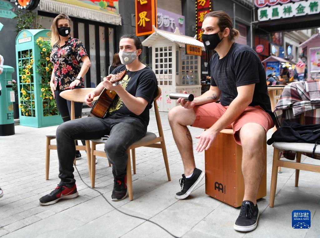 2020年4月16日,一支來(lái)自巴西的樂(lè )隊在西安市未央區一處商業(yè)街區進(jìn)行戶(hù)外表演。