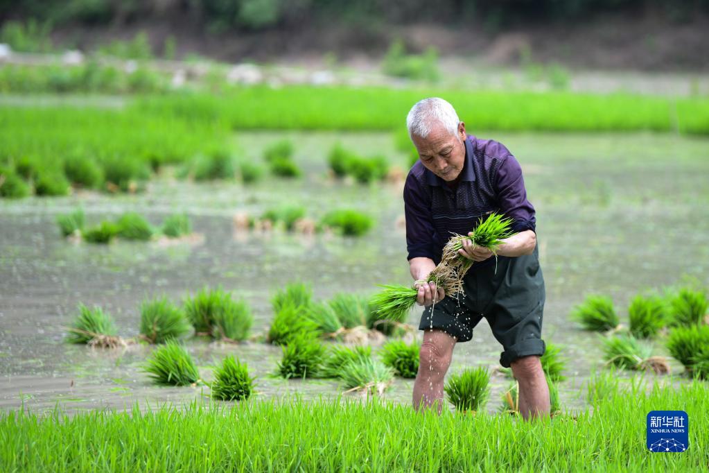 初夏時(shí)節,各地稻田里一派忙碌的景象,農民們搶抓農時(shí),移栽秧苗、育秧插秧。新華社發(fā)(王超 攝)
