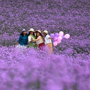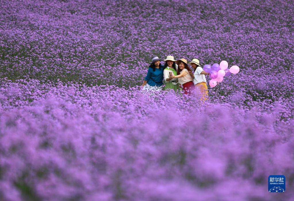 初夏,人們利用周末外出賞花。