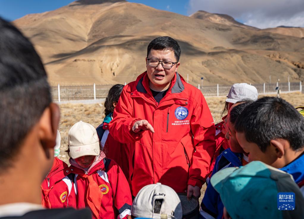 5月15日,珠峰站工作人員席振華給孩子們講解科學(xué)儀器的功能作用。