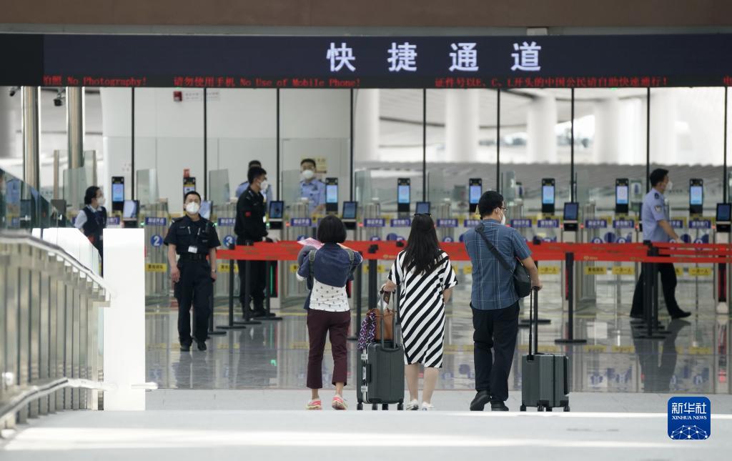5月15日,旅客準備通過(guò)北京大興機場(chǎng)邊檢站快捷通道。
