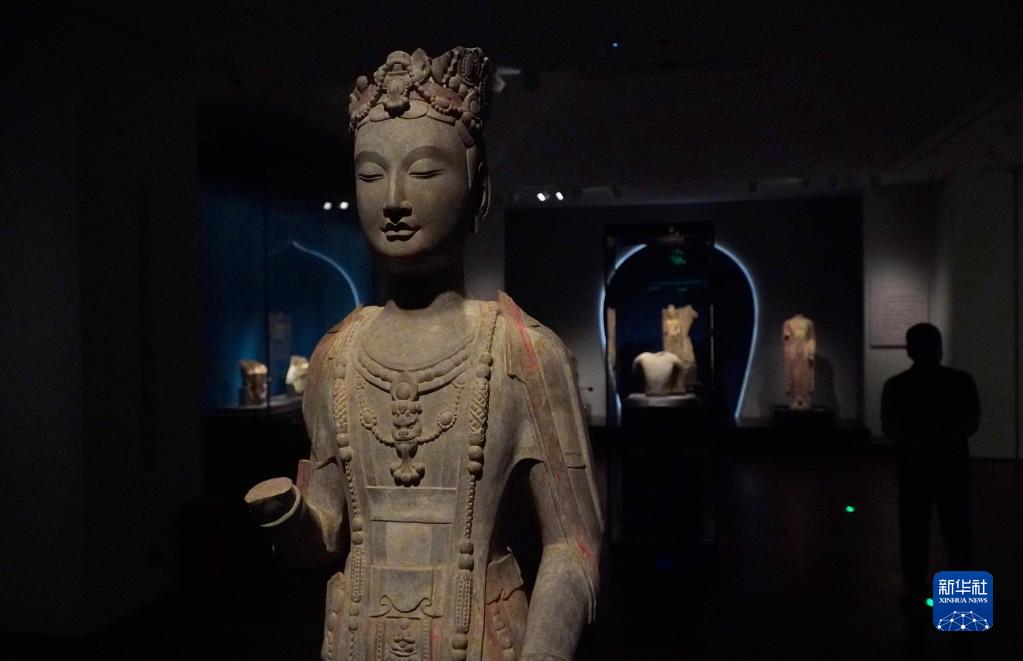 5月15日,在山東省青州博物館新館,1996年龍興寺遺址窖藏出土的佛教造像正在進(jìn)行展出。