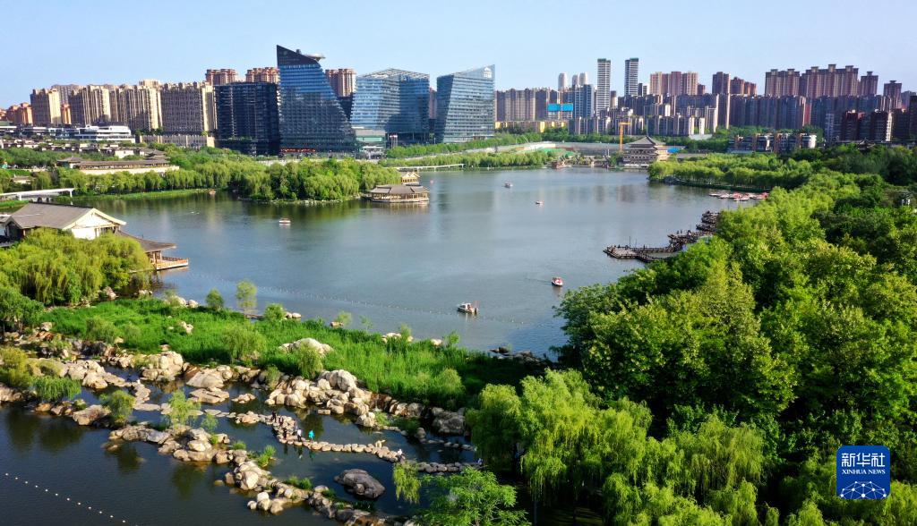西安曲江南湖(4月25日攝,無(wú)人機照片)。