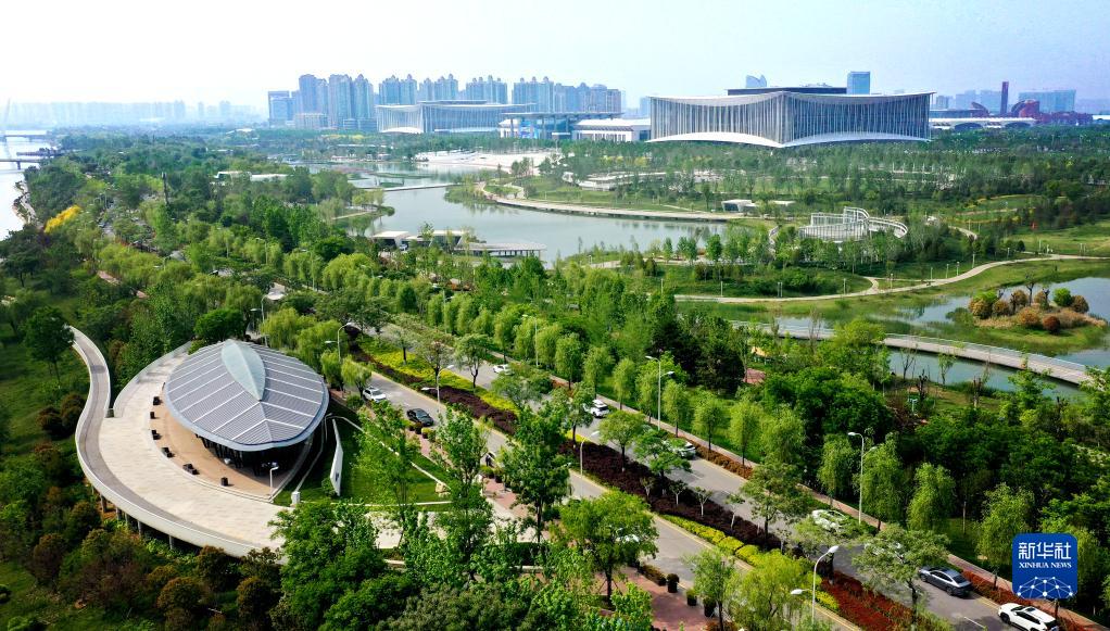 位于西安浐灞生態(tài)區的西安國際會(huì )展中心(4月26日攝,無(wú)人機照片)。
