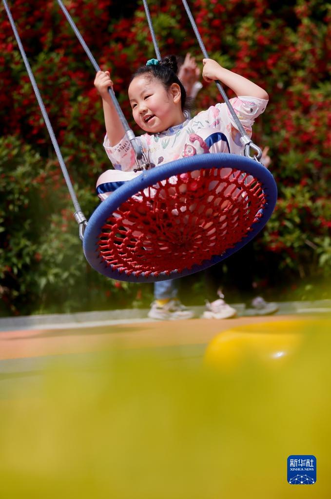 5月14日,小朋友在青島市即墨區通濟街道一個(gè)公園玩耍。