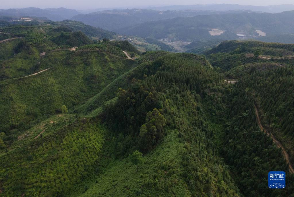 這是5月14日拍攝的四川省榮縣東興鎮長(cháng)興林場(chǎng),曾經(jīng)的荒山已經(jīng)變成了青山(無(wú)人機照片)。
