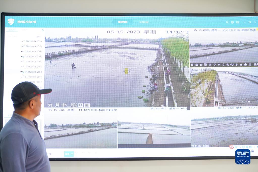 5月15日,在永吉縣一拉溪鎮九月豐家庭農場(chǎng),農民通過(guò)“智慧農業(yè)”指揮平臺查看水稻插秧進(jìn)度。