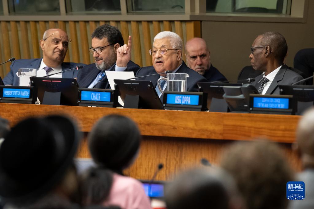 5月15日,巴勒斯坦總統阿巴斯(中)在聯(lián)合國巴勒斯坦人民行使不可剝奪權利委員會(huì )高級別會(huì )議上致辭。