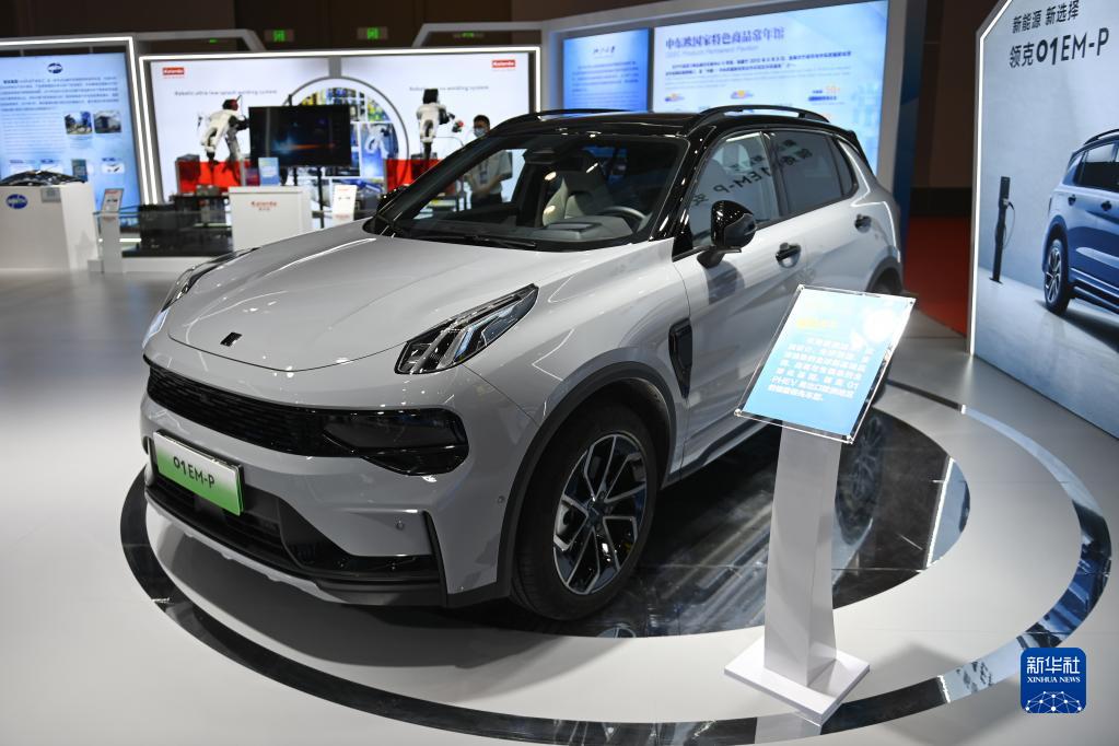 5月16日在中東歐展館浙江展區拍攝的一款出口歐洲的領(lǐng)克汽車(chē)。