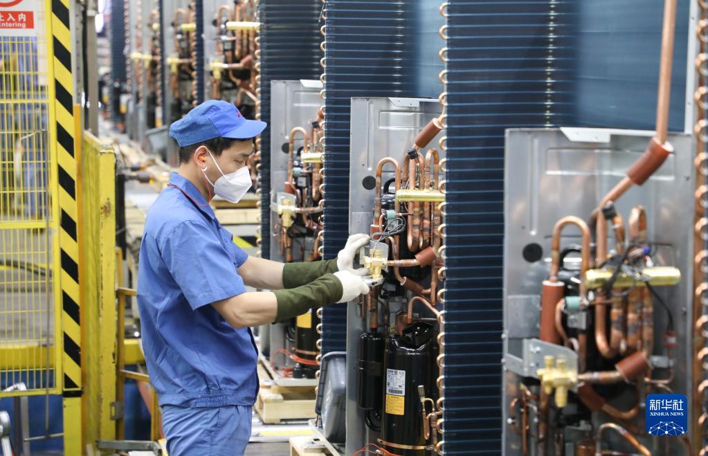 5月15日,山東省青島市即墨區通濟新經(jīng)濟區一家空調生產(chǎn)企業(yè)的工人在生產(chǎn)線(xiàn)上忙碌。