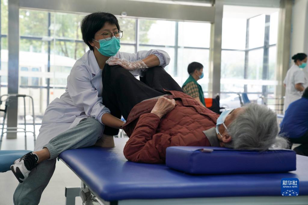 5月16日,在江蘇省鎮江市潤州區黎明社區衛生服務(wù)中心康復訓練中心,醫務(wù)人員為患者進(jìn)行康復訓練。黎明社區衛生服務(wù)中心的“康復聯(lián)合病房”為上級醫院下轉患者提供全程、連續康復治療。