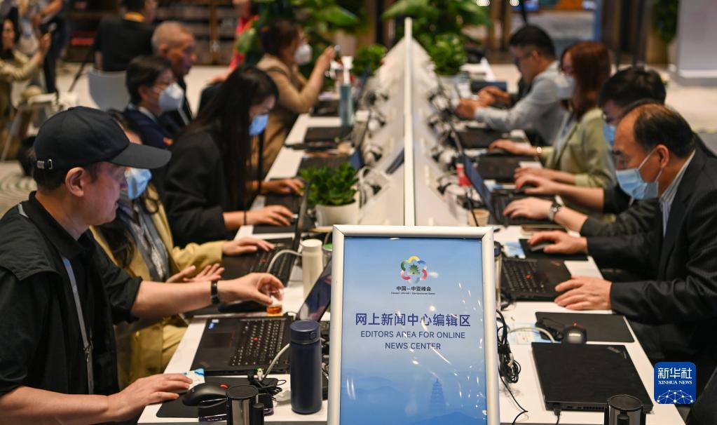 5月16日,記者在中國-中亞峰會(huì )新聞中心工作。