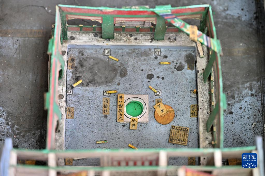 這是修復中的圓明園同樂(lè )園建筑群樣式雷燙樣文物局部(5月16日攝)。