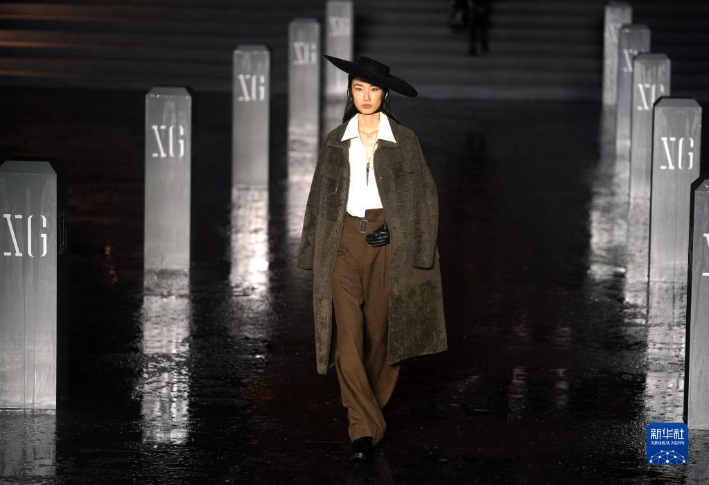 5月16日,模特在雨中展示XG 2023冬季系列時(shí)裝。