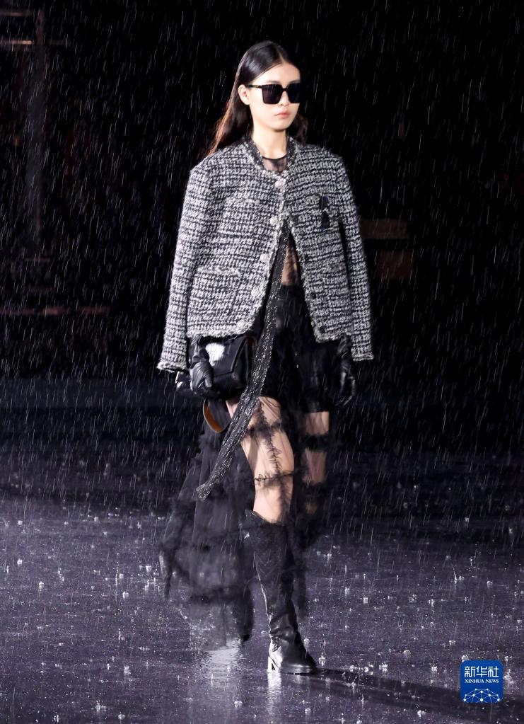 5月16日,模特在雨中展示XG 2023冬季系列時(shí)裝。