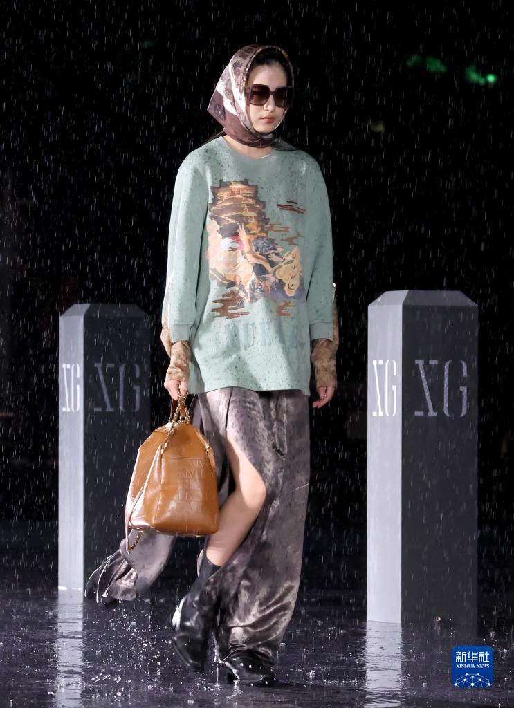 5月16日,模特在雨中展示XG 2023冬季系列時(shí)裝。